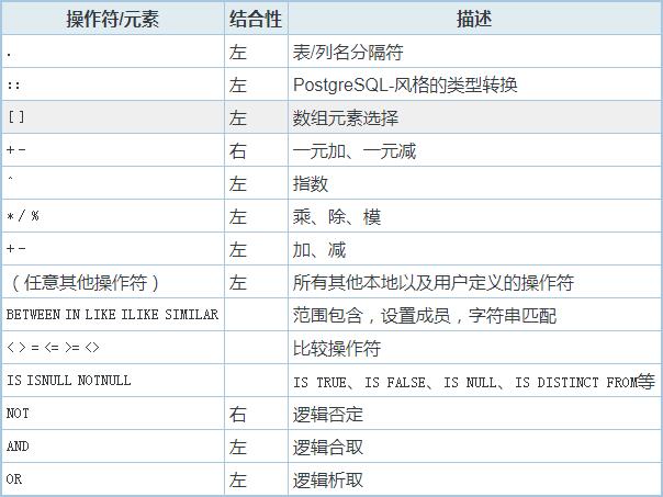 详见官方文档:http://www.postgres.cn/docs/10/sql-syntax-lexical.html#SQL-PRECEDENCE