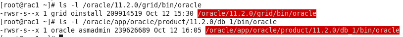 查看GRID_HOME和ORACLE_HOME的bin目录下oracle文件的权限是否正确