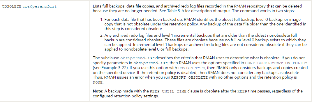 备份语句里加keep until time 'sysdate+1'的效果是什么?show all里看到RETENTION POLICY TO RECOVERY WINDOW OF 1 DAYS; 就指明了保留最近一天的备份,也就是说DB可以恢复到过去24小时的任一时间点,而它的LEVEL 1备份又是cululative, 若恢复时只需要LEVEL0备份和最近24小时的一个LEVEL 1备份(假设叫AA备份),而AA备份之前的LEVEL 1备份完全不需要。既然已经这么设置了,还要写keep until time 'sysdate+1'干啥?