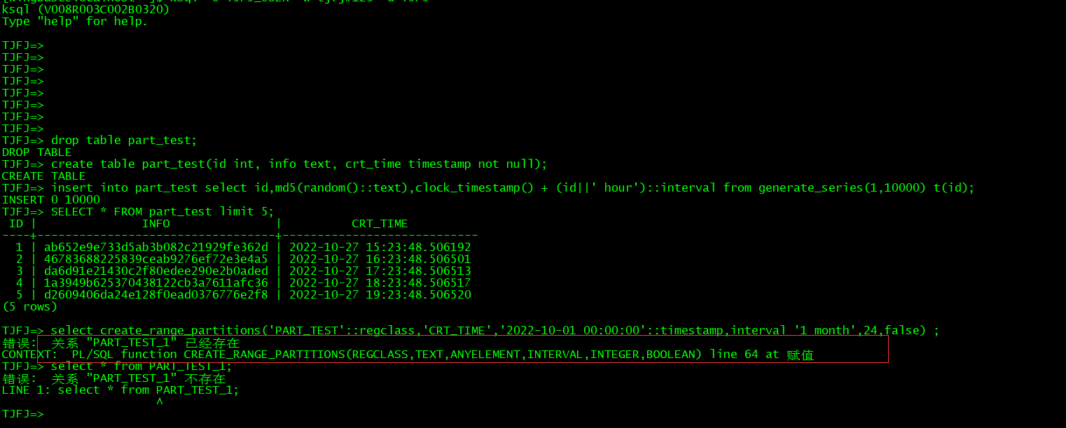 kingbasev8r3 SYS_PATHMAN插件分区一直报错已存在子表
