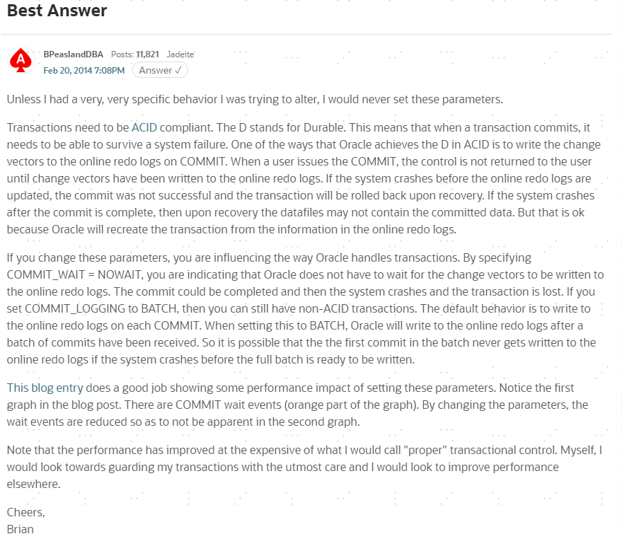 实施:ALTER SYSTEM SET commit_logging=batch;