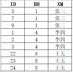 我想删掉BH重复的数据,比如张三的数据是重复的,我想删掉id为5、7的数据,保留id最大的一条9的数据