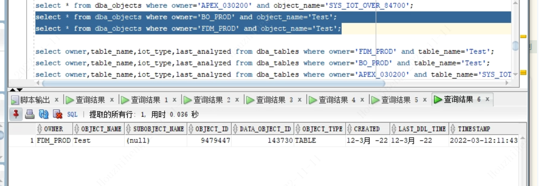 查看dba_objects中存在