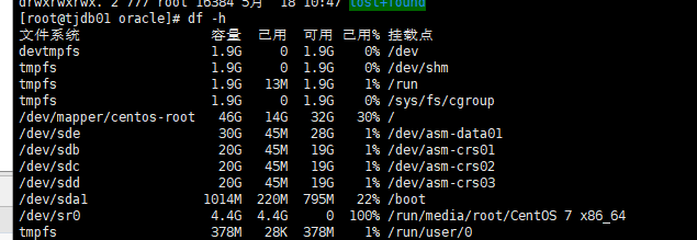 df -h能看到?是不是格式化了?ASM是直接使用磁盘(或者磁盘分区)的,不要格式化为文件系统