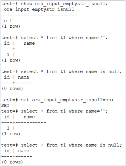 PG 模式下,需要设置ora_input_emptystr_isnull=off,否则会有很多问题(因为这个参数本身就是为兼容oracle设置的,必须在oracle模式下使用)。