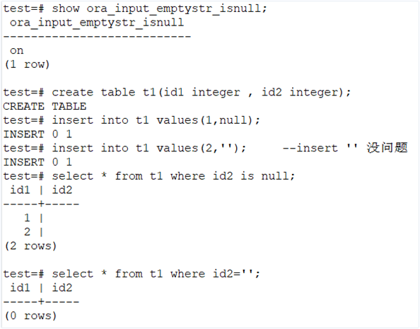 1) 当ora_input_emptystr_isnull=on ,insert 与 select 对于 ‘’ 都没问题