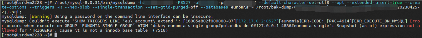 匿名用户有没有大佬,在使用mysqldump导出polardbx的数据库的时候遇到这个报错的?