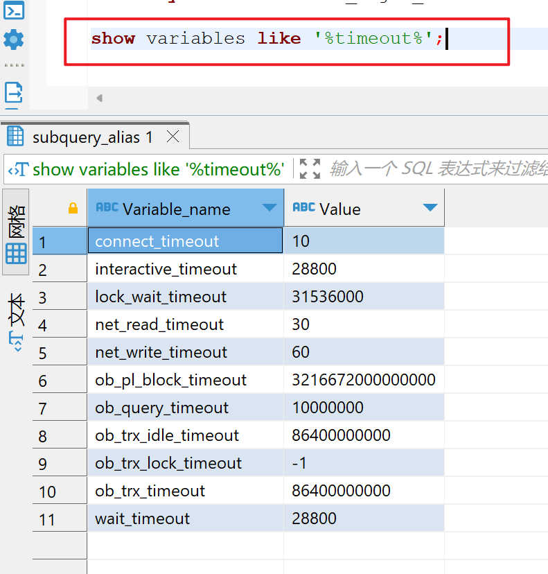 参数(parameter)这个概念是 ORACLE 的,MySQL的参数叫做变量(variable),并且MySQL的变量还分全局层面和会话层面。OB的MySQL租户也继承了这点。