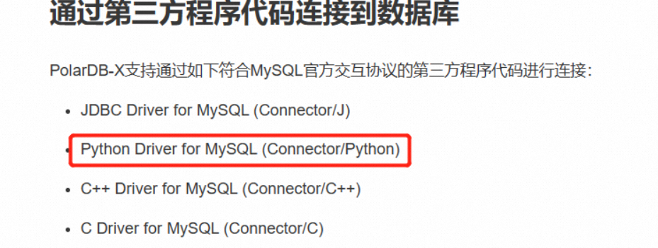 各位好,我在用pandas(背后是基于mysqlclient驱动的SQLAlchemy)对PolarDB-x进行read_sql_table操作时有报错,Snapshot (as of) expression not allowed for 'TABLES', cause it is not a innodb base table 。我看文档中写的polardb-x支持的驱动是Python Driver for MySQL (Connector/Python) ,但是SQLAlchemy官网提示Python Driver for MySQL (Connector/Python) 有很多未解决的问题,