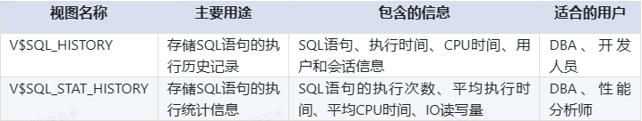 dm8中v$sql_history和V$SQL_STAT_HISTORY的区别?
