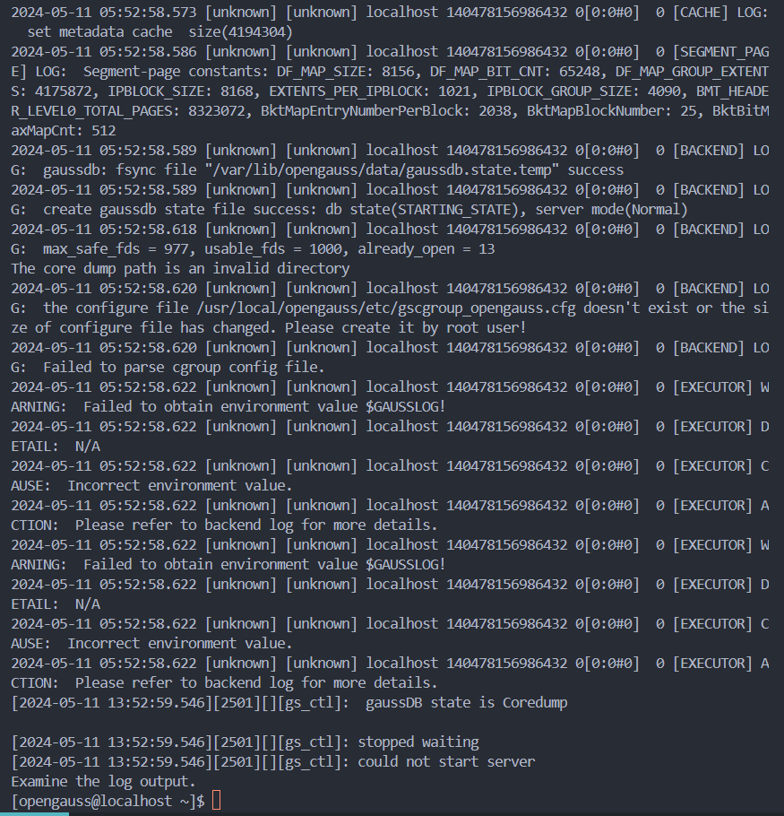 昨晚还能正常连上数据库,今天执行gsql -d postgres -r 就出现了这个报错: