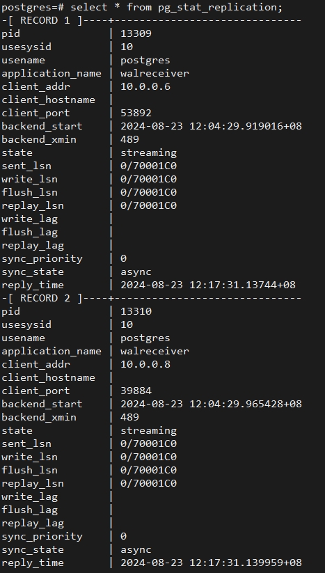 查看主备复制状态: