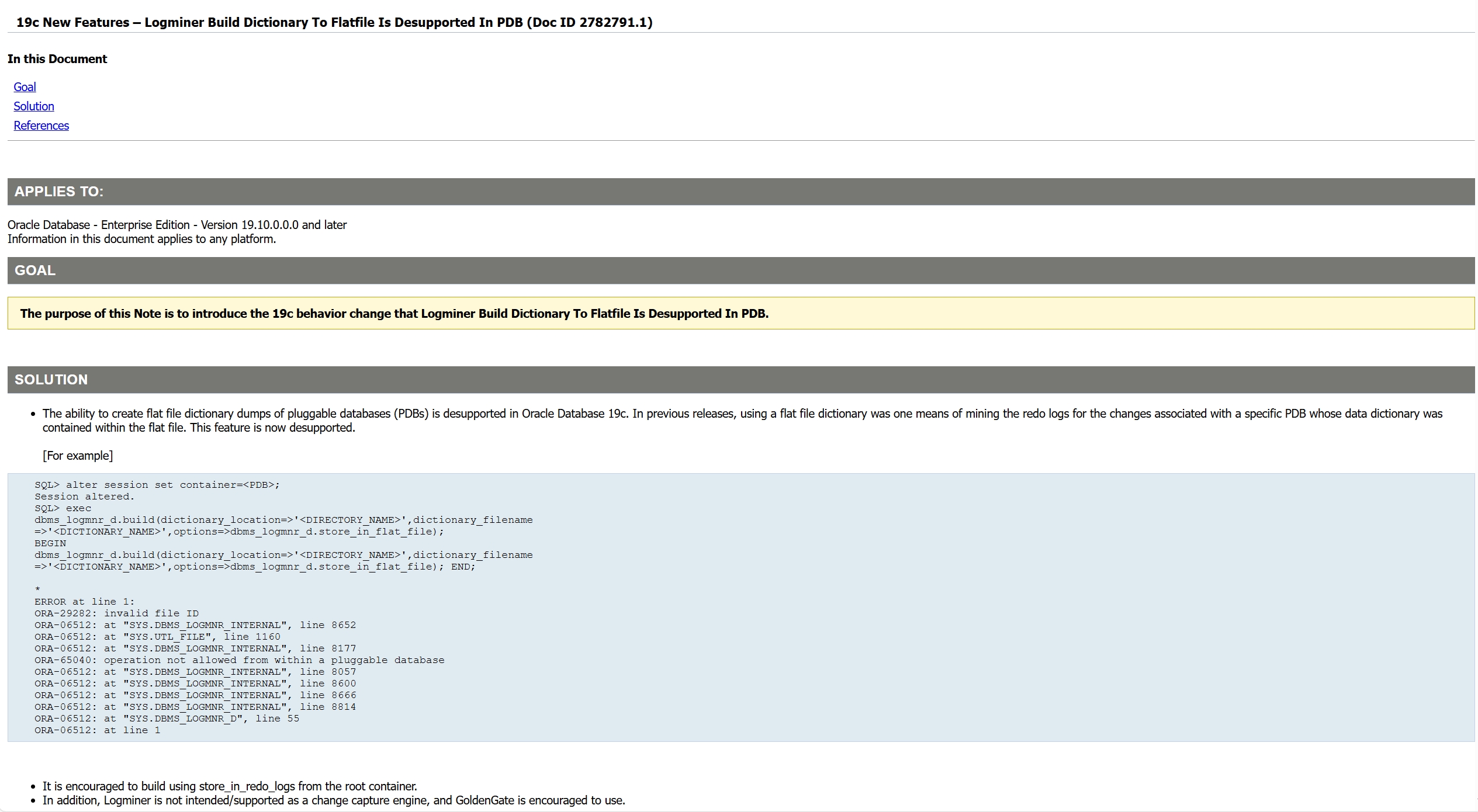 SQL> exec dbms_logmnr_d.build('minerPDB1.dic', 'SCRIPTS', dbms_logmnr_d.store_in_flat_file);