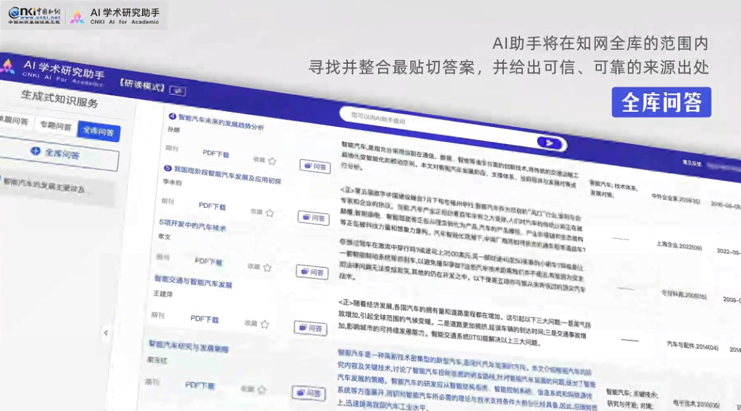 - KBase支持向量数据库引擎,依托知网海量高质量文本语料数据以及同方知网华知大模型的生成能力,能够提供完整的检索增强生成解决方案,如知网AI学术研究助手。
